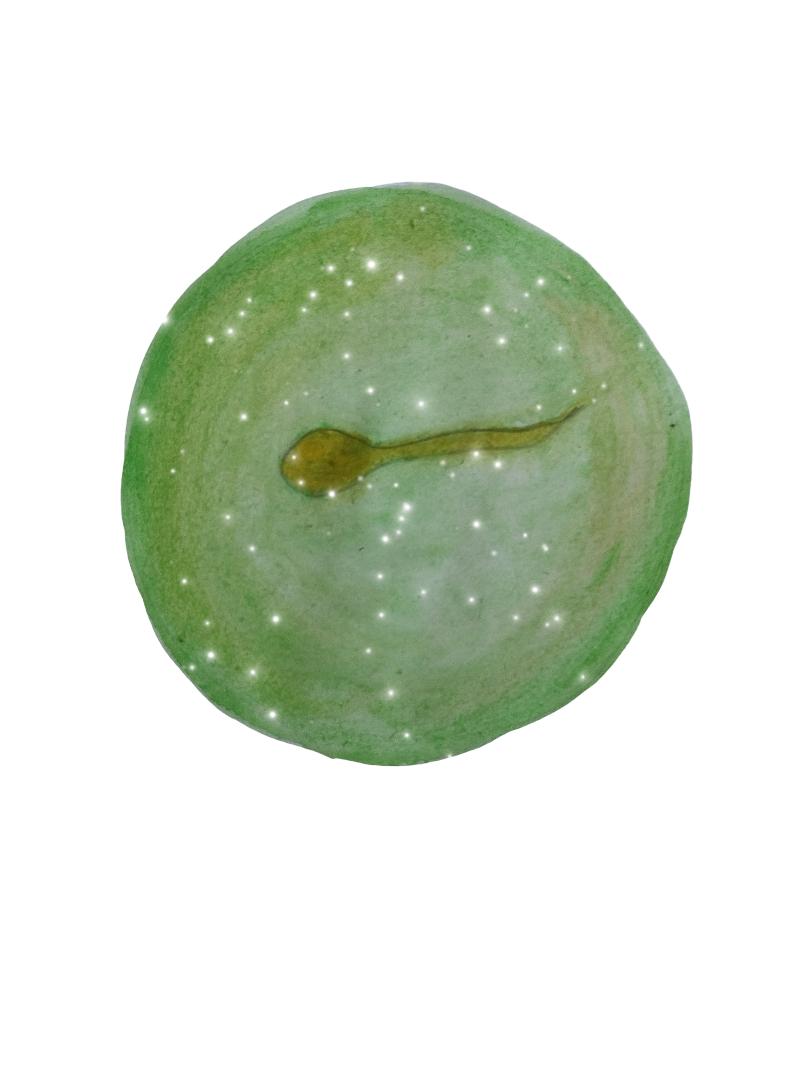 Вы приготовили отличный дом для малыша. Возьмите икринку и поместите ее в пазуху листочка водного растения.